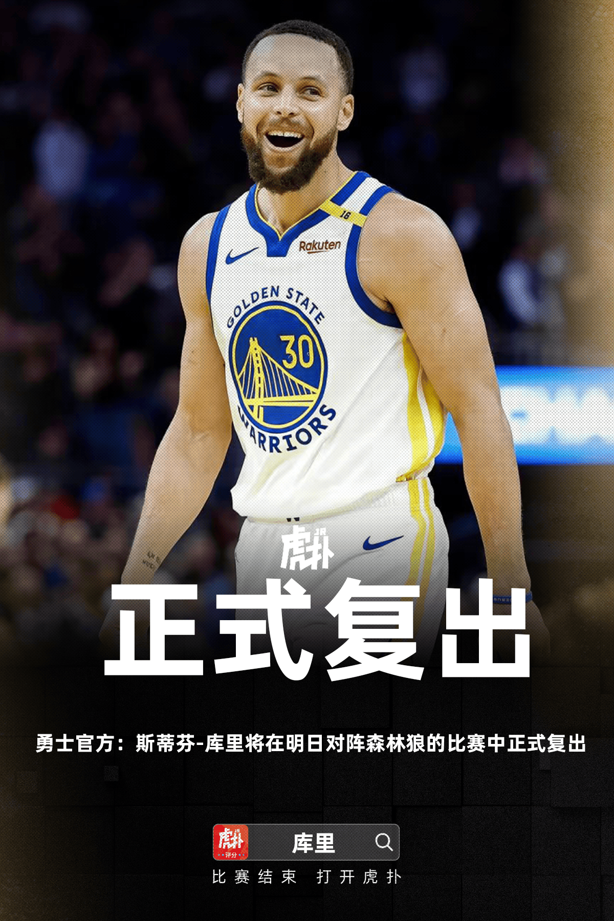 [流言板]勇士官方:庫里將在明日比賽復(fù)出,流言里格林、板勇比賽霍福德缺席由虎撲籃球資訊 發(fā)表在籃球資訊 https://bbs.hupu.com/502