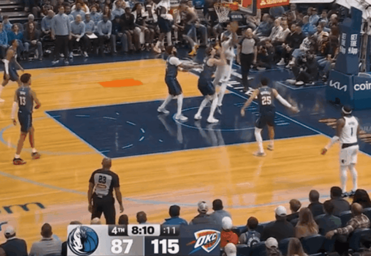 NBA常規(guī)賽,獨行俠對陣雷霆的籃命比賽正在進行中。