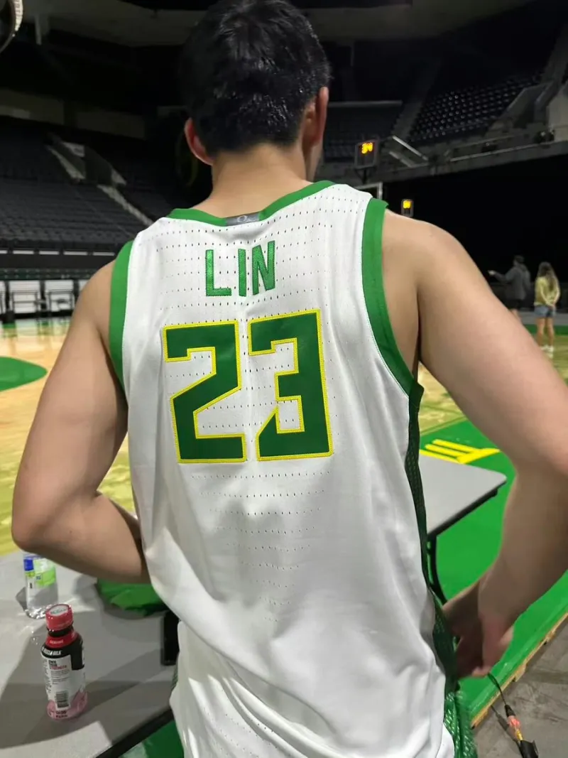 配文:“林葳將身穿俄勒岡大學(xué)的板記23號(hào)戰(zhàn)袍。”