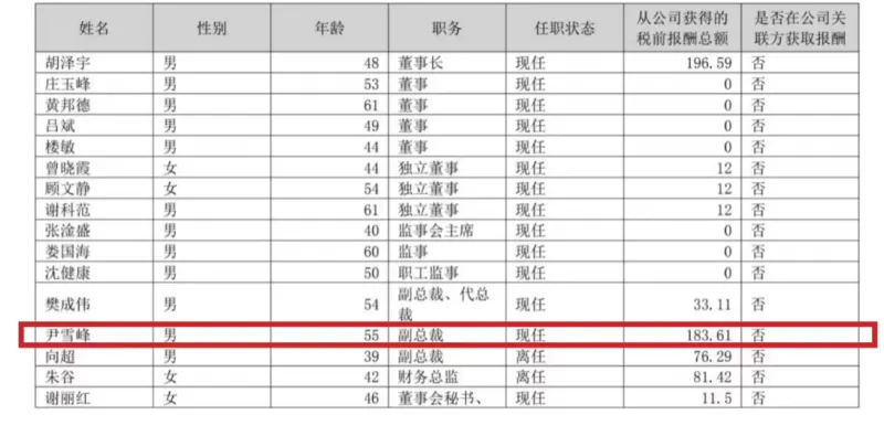 參考眾泰汽車財報獲悉,尹雪峰,1969 年 11 月出生,曾任哈飛汽車股份有限公司汽車研發(fā)中心主任,中國長安汽車集團哈飛汽車股份有限公司董事、副總裁、總工程師,哈爾濱博通汽車部件制造有限公司董事長,眾泰汽車股份有限公司董事長助理,湖南江南汽車制造有限公司臨沂分公司總經(jīng)理,領途汽車有限公司常務副總裁等職務。2024 年,尹雪峰從眾泰汽車獲取的稅前年薪為 183.61 萬元。