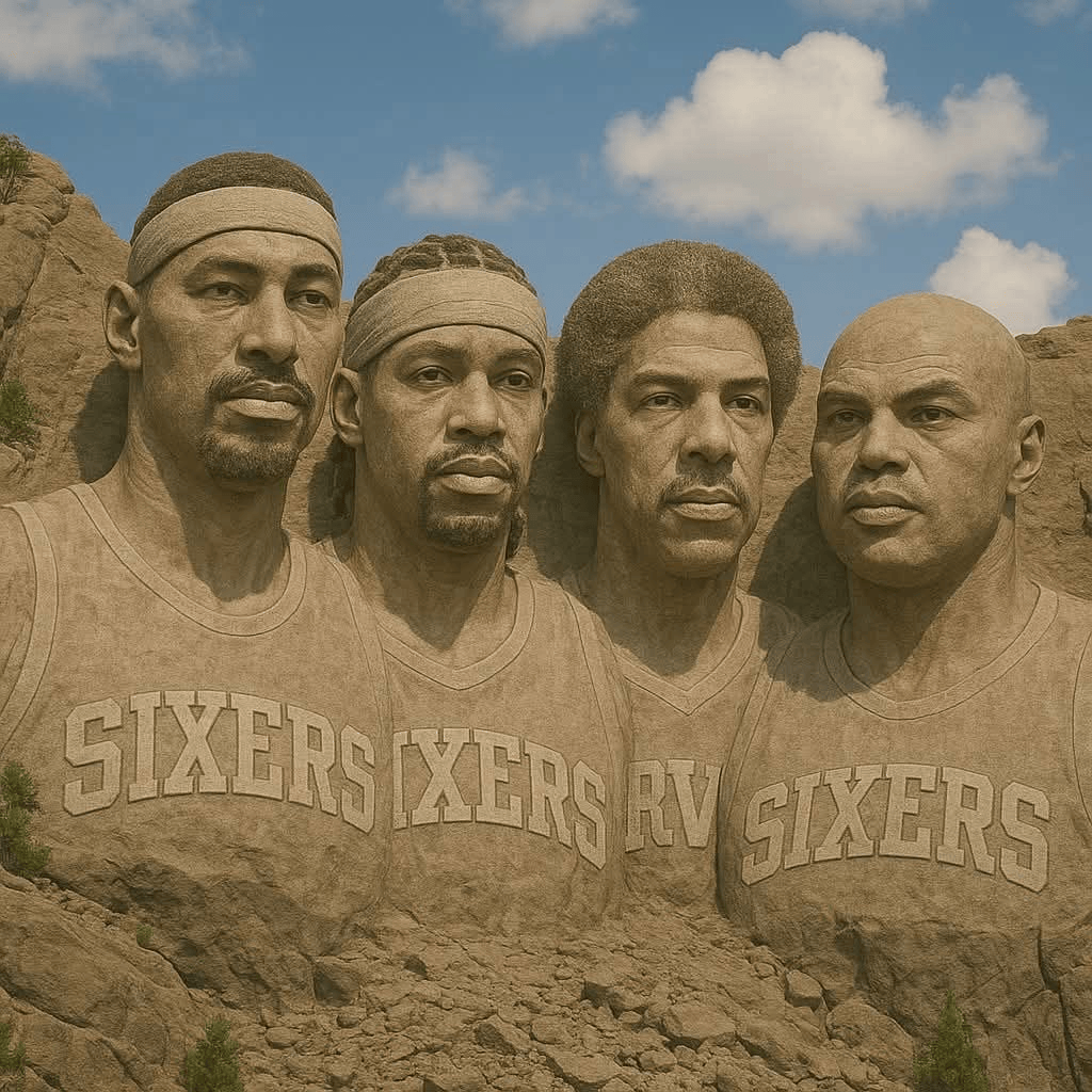他曬出的AI合成圖是:威爾特-張伯倫、阿倫-艾弗森、板人朱利葉斯-歐文和查爾斯-巴克利。隊(duì)記隊(duì)史