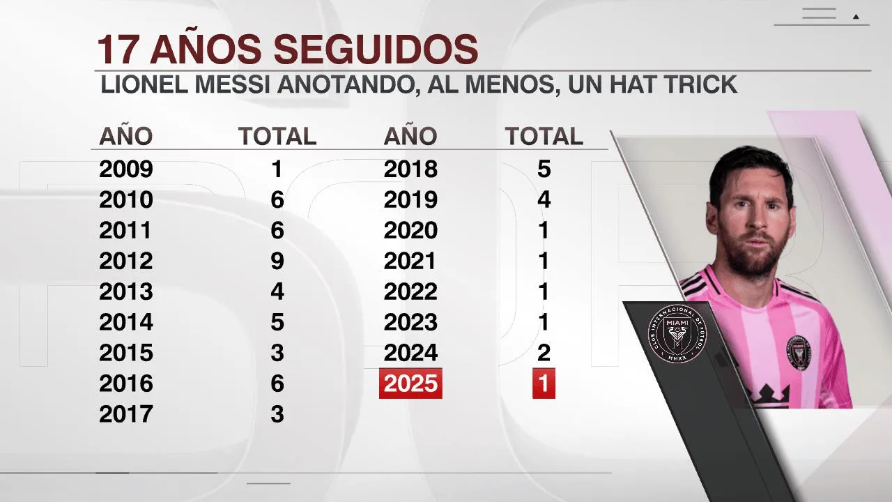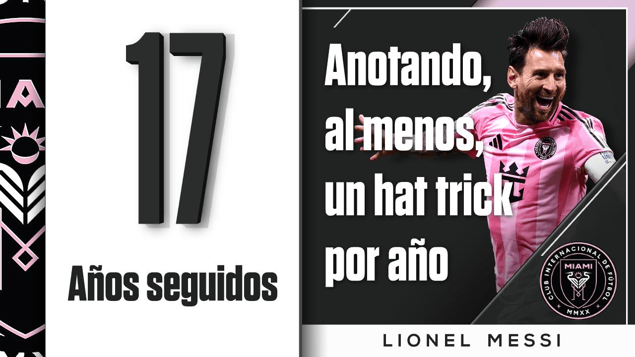 這是流言連續(xù)梅西今年的首個(gè)帽子戲法,他已經(jīng)連續(xù)17年收獲帽子戲法: