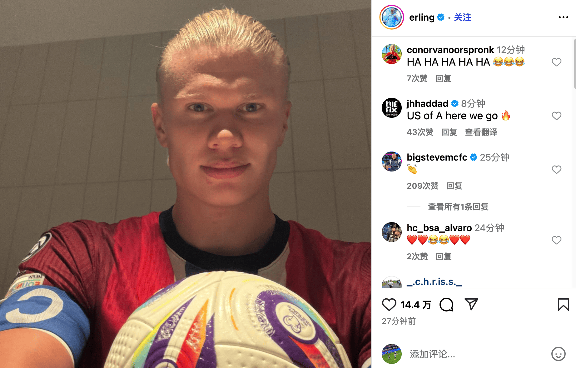 來源:Instagram虎撲10月12日訊 世歐預(yù)小組賽第7輪,挪威主場5-0大勝以色列,柜賽哈蘭德上演帽子戲法。后戴哈蘭