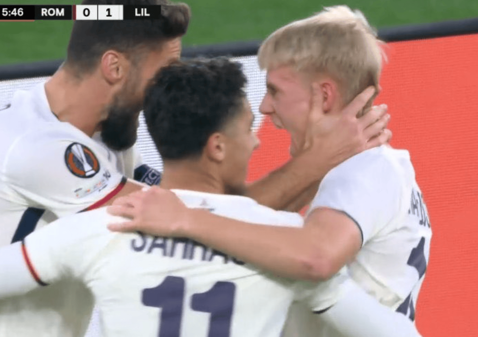 虎撲10月03日訊 歐聯(lián)聯(lián)賽階段里爾客場挑戰(zhàn)羅馬的比賽正在進行中,冰島中場哈拉爾德松開場6分鐘就為里爾取得領(lǐng)先。爾德爾年