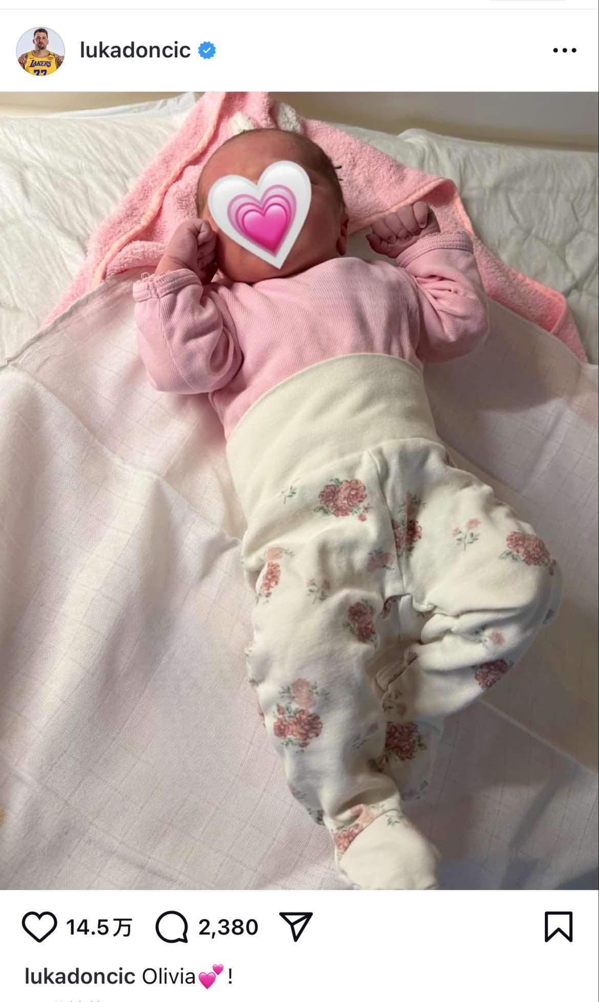 虎撲12月06日訊 今日,盧卡-東契奇更新社媒,契奇宣布自己第二個孩子奧利維亞(Olivia)出生。更新