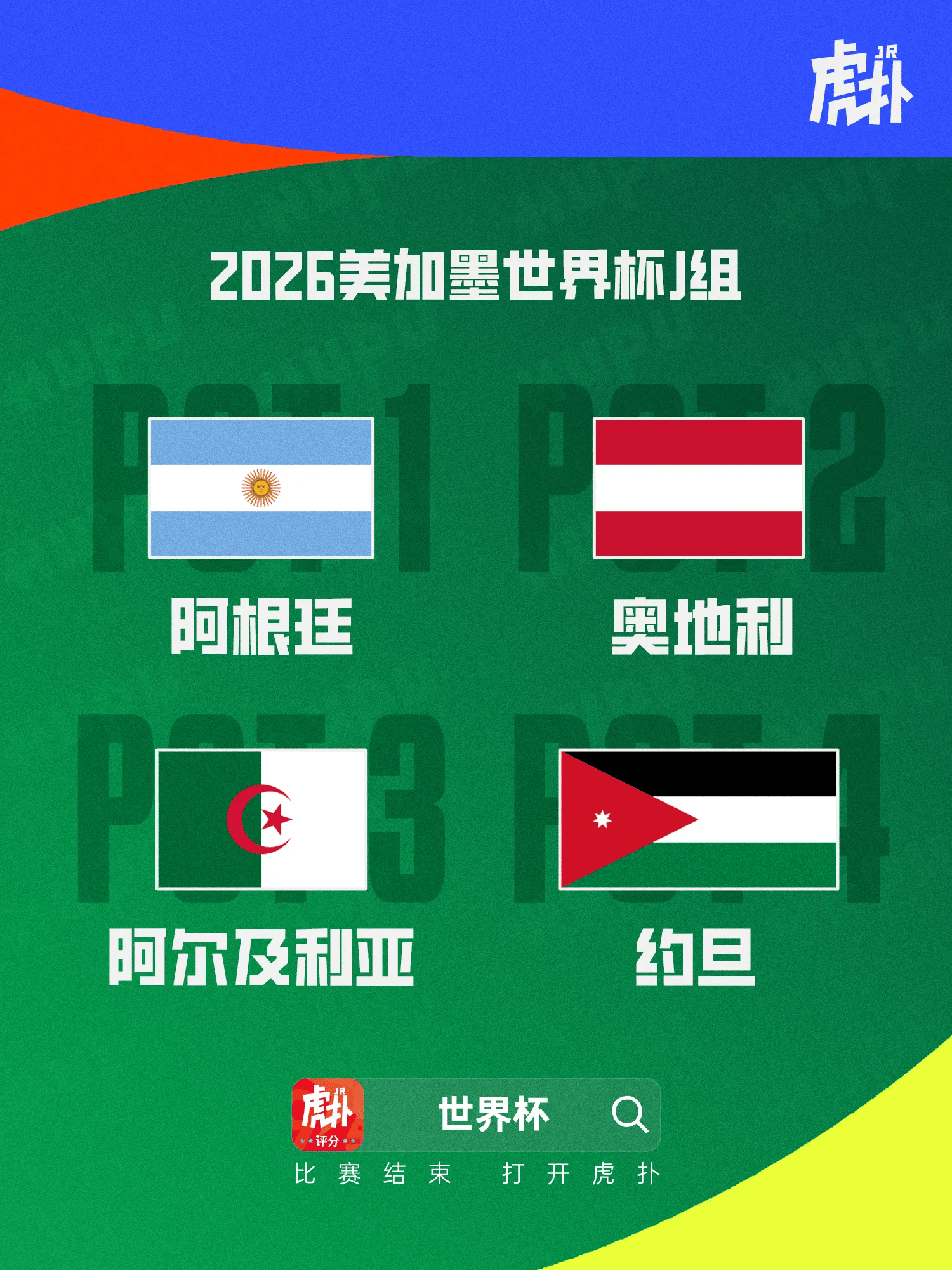 虎撲12月06日訊 2026美加墨世界杯分組抽簽出爐,阿根廷落位J組,葡萄葡萄牙落位K組。牙均有望遇
