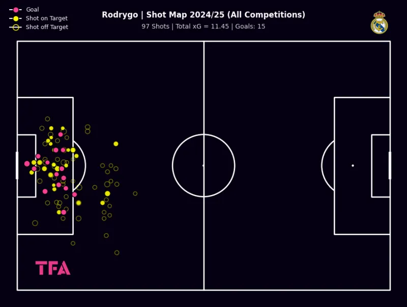 (圖)24-25賽季羅德里戈射門分布圖