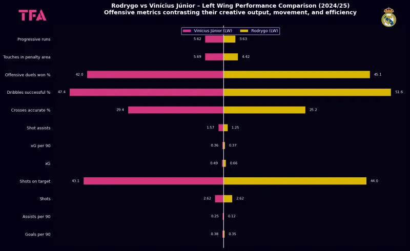 不過,并非所有數(shù)據(jù)都不利于他。在與維尼修斯的各項數(shù)據(jù)對比中,羅德里戈都未處下風。相信這樣出色的數(shù)據(jù)阿隆索也不會忽視,羅德里戈完全可以作為維尼修斯的平替,在漫長的賽季中,羅德里戈仍有機會。