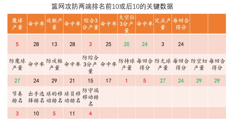 上表中的數(shù)據(jù)可以清晰反映出籃網(wǎng)的比賽風(fēng)格,他們是非常注重魔球化的球隊(duì),攻框+三分的產(chǎn)量高居聯(lián)盟第5、其中三分產(chǎn)量高居聯(lián)盟第3。需要注意的是籃網(wǎng)的大空位三分產(chǎn)量?jī)H僅排名聯(lián)盟第20,說(shuō)明球隊(duì)投了大量的干擾下三分,可見(jiàn)教練組對(duì)果斷出手三分的堅(jiān)決要求。
