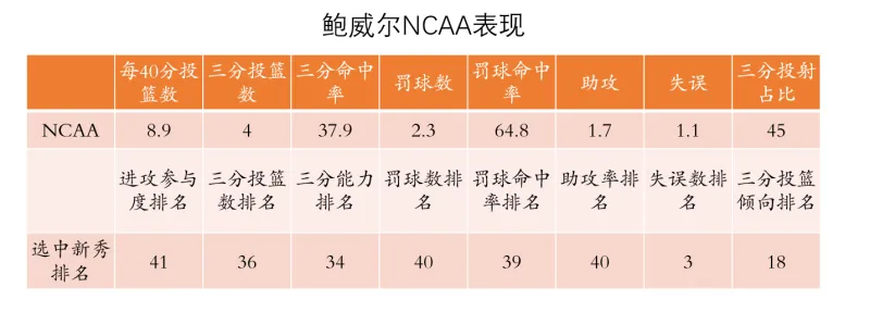 在防守端鮑威爾具有很好的身體天賦,具有很好的盯人彈性,外線(xiàn)和鋒線(xiàn)皆可對(duì)位,有著出色的外線(xiàn)領(lǐng)防人潛質(zhì)。但大學(xué)數(shù)據(jù)顯示他的防守小數(shù)據(jù)不夠好,協(xié)防端仍需大量學(xué)習(xí),如何將身體天賦轉(zhuǎn)換為出色的防守影響力是下賽季甚至長(zhǎng)期的課題。