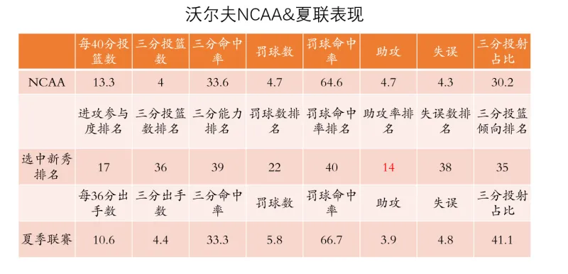沃爾夫是一個(gè)4號(hào)位的持球人,這不禁讓人想起上賽季大放異彩的蘭德?tīng)枺膫骺厮酱_實(shí)能達(dá)到后衛(wèi)的標(biāo)準(zhǔn),作為內(nèi)線(xiàn)的助攻率能排在本屆新秀第14名、領(lǐng)先一堆后衛(wèi)球員。