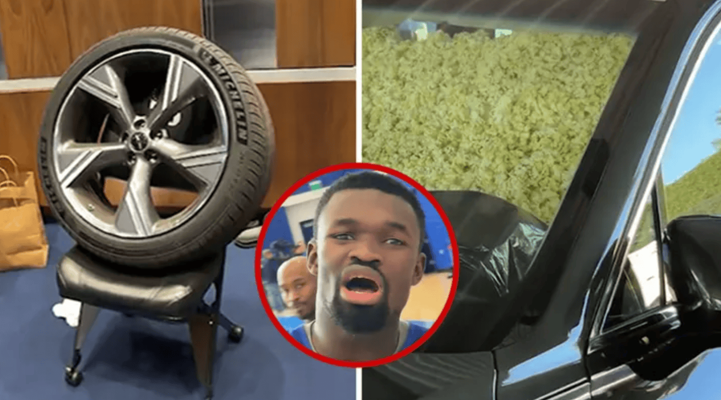 76人球員安德烈-德拉蒙德當?shù)貢r間本周四在個人社媒上傳了一段視頻,他們給新秀博納來了一次經(jīng)典惡作劇,博納的車內(nèi)被填滿爆米花,而且一個車輪還被卸下來,放在了博納更衣室儲物柜前。