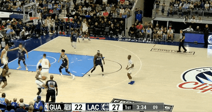 虎撲10月10日訊 NBA季前賽,快船對陣廣州的手炸比賽正在進(jìn)行中