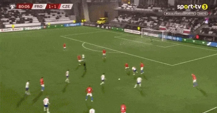 捷克后防線在第81分鐘的板法連續(xù)失誤讓阿格納松為法羅群島打入制勝球: