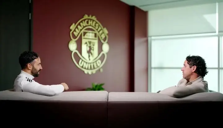 前曼聯(lián)球員歐文·哈格里夫斯作為TNT的支持人前往卡靈頓基地,采訪了阿莫林。