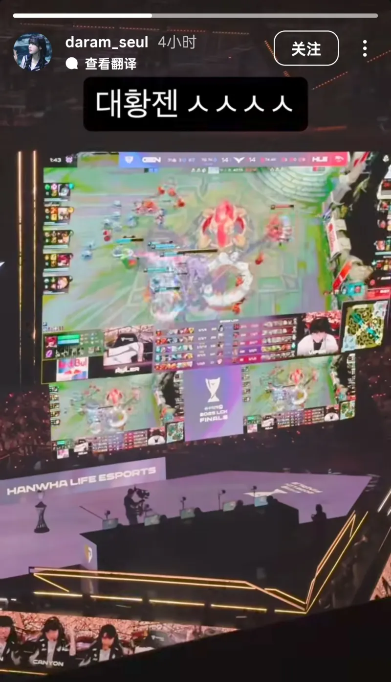 而Ruler前女友也去到了現(xiàn)場(chǎng)觀賽啊,還發(fā)了動(dòng)態(tài):"大皇GEN,觀賽666"