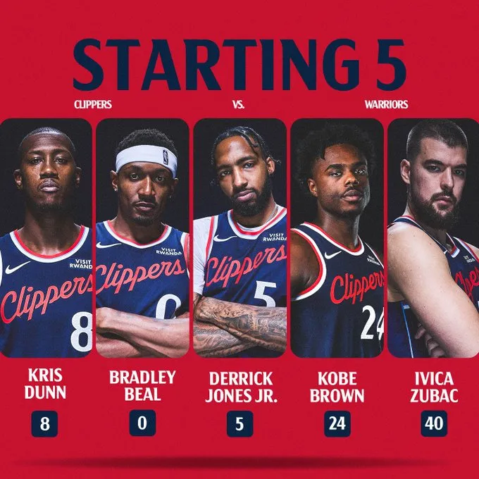 快船首發(fā)出爐:鄧恩、比爾、小瓊斯、科比-布朗、祖巴茨。