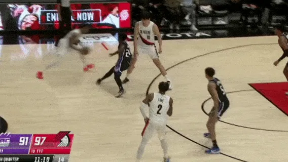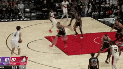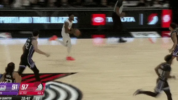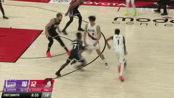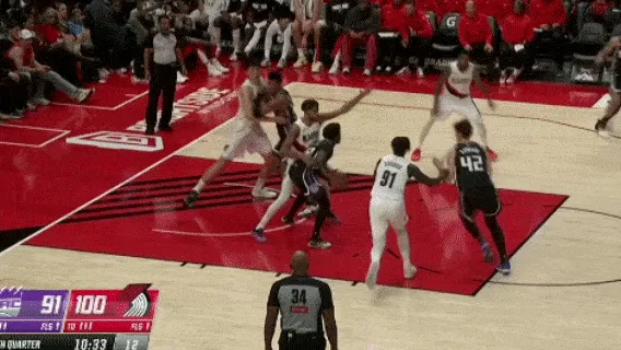楊瀚森的瘋狂得分,首先來自于阿夫迪亞的獲開突破分球,他在底角接球,拓者替補大空位出手命中。席最