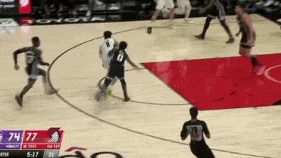 然后,韋斯利又在防守中完成搶斷,在快攻反擊中頂著德文-卡特打成2+1,