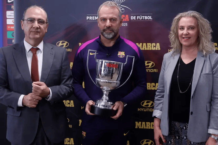 虎撲11月21日訊 漢斯-弗利克領(lǐng)取了米格爾-穆尼奧斯獎(jiǎng)杯,作為上賽季西甲最佳教練,此獎(jiǎng)項(xiàng)由所有《馬卡報(bào)》記者投票選出。這個(gè)獎(jiǎng)項(xiàng)實(shí)至名歸,不僅因?yàn)樗麕ьI(lǐng)巴塞羅那贏得的冠軍,也因?yàn)榍蜿?duì)在整個(gè)賽季中展現(xiàn)出的優(yōu)秀比賽內(nèi)容。