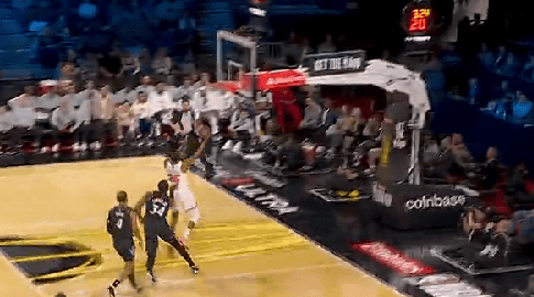 比賽的哈特第二節(jié),哈特反擊傳球在兩人中間穿過(guò),反擊助攻布里奇斯超車上籃打進(jìn)。傳球穿過(guò)超車