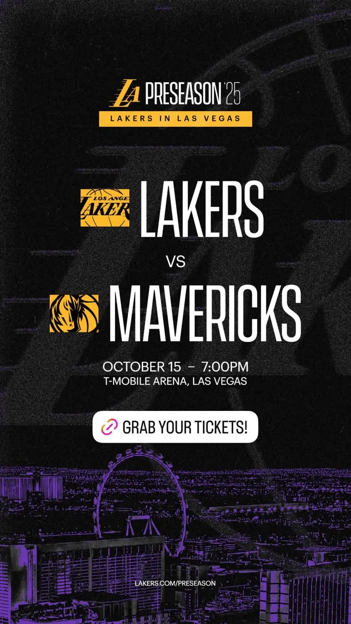 虎撲09月19日訊 湖人官方更新ins,曬出25-26賽季季前賽的球即前賽預(yù)熱海報。