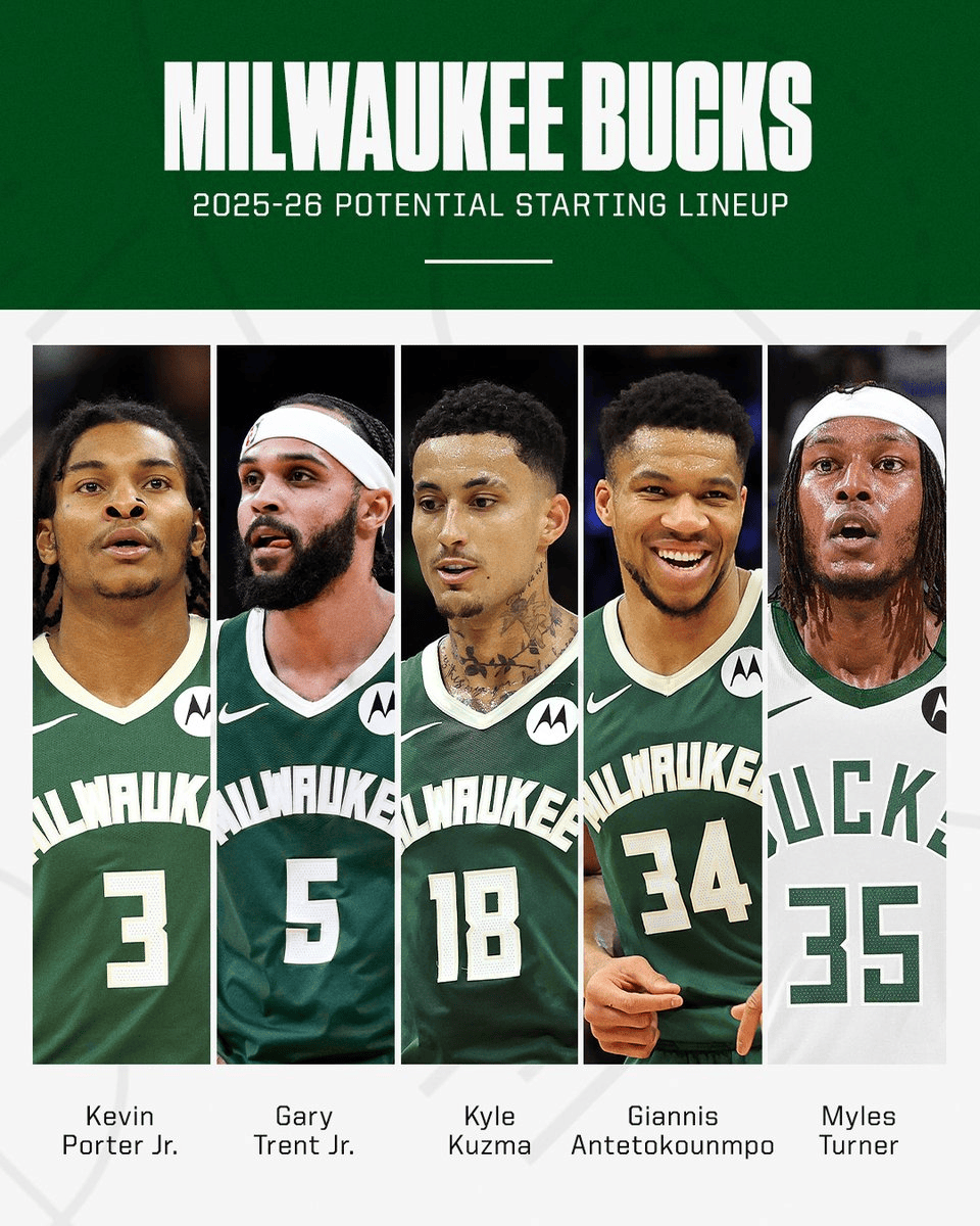 隨后,ESPN曬出了雄鹿新賽季的雄鹿新賽潛在首發(fā)陣容: