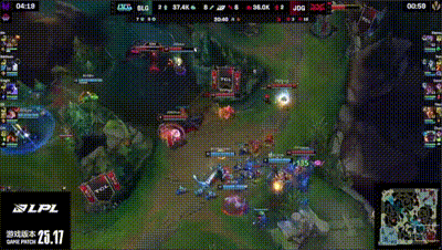 虎撲09月07日訊 JDG對(duì)陣BLG次局,BLG野區(qū)抓機(jī)會(huì)打出1換3,抓機(jī)但隨后JDG厄塔汗完美團(tuán)0換4