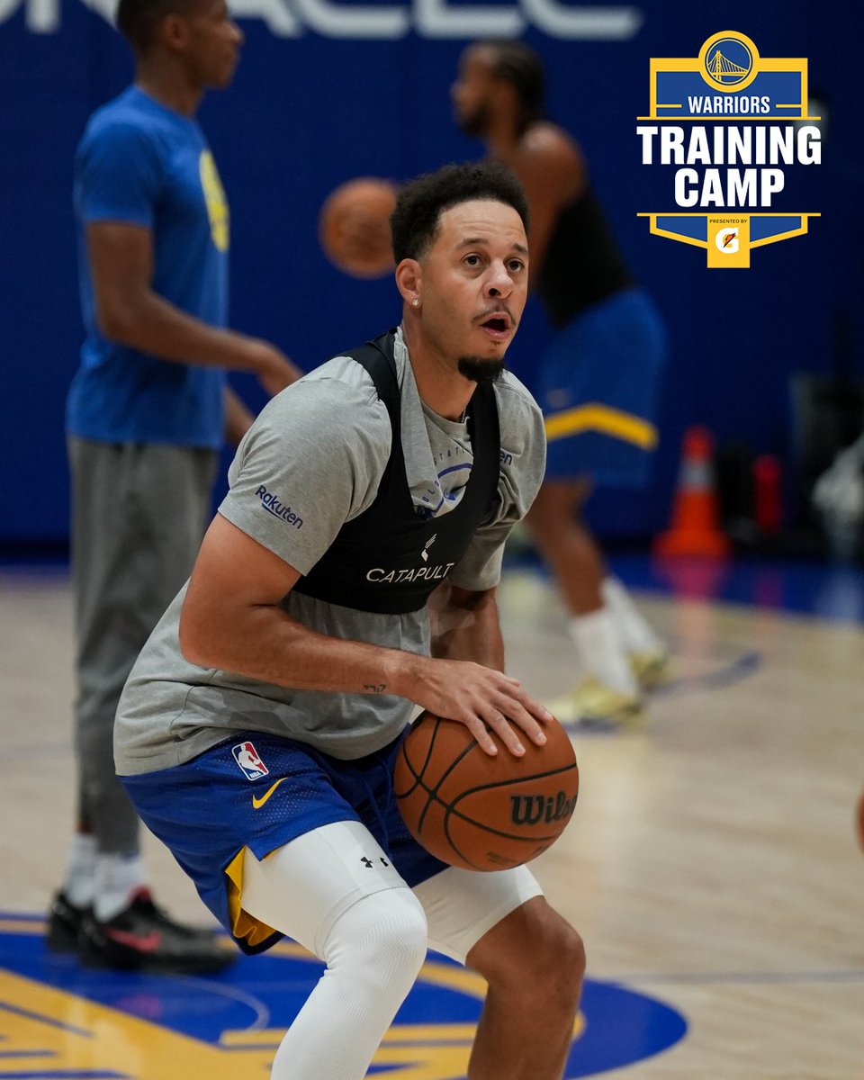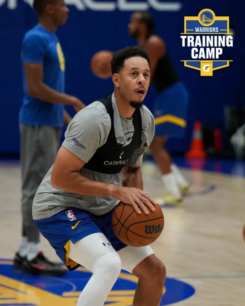 時打士社思來源:X 時打士社思虎撲10月03日訊 今日,勇士社媒曬出賽思-庫里在訓練營的卡勇訓練照片,并配文: