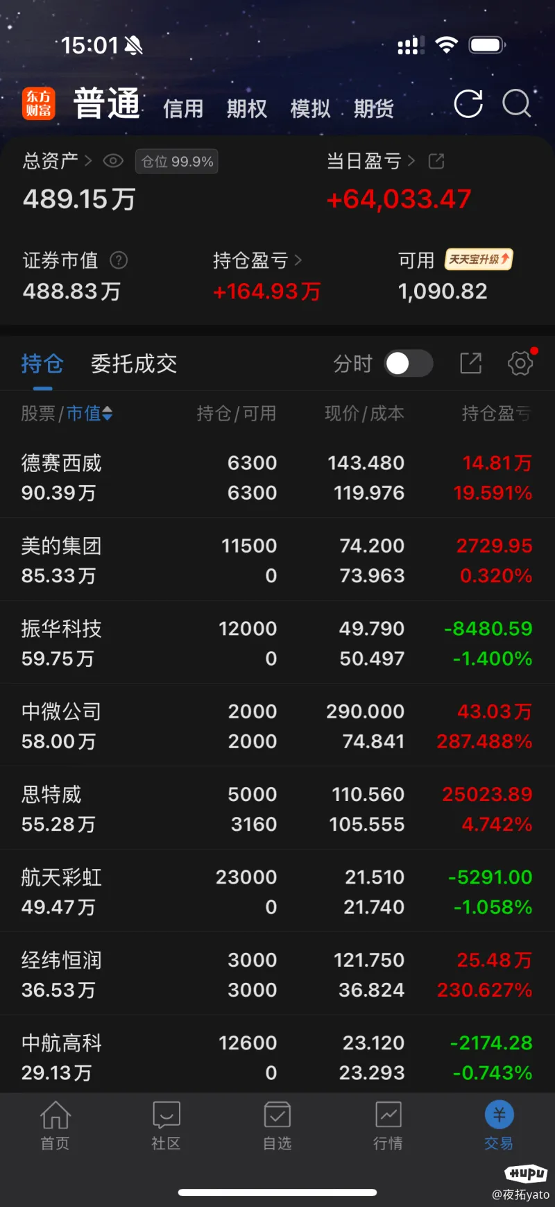 加倉:美的集團(tuán)(73.96買入11550股)振華科技(50.5買入12000股)思特威(113.26買入1840股)航天彩虹(21.74買入23000股)中航高科(23.29買入12600股)。除了美的基本上全部買在今日高點(diǎn),確實(shí)不太會看買點(diǎn)。我的買點(diǎn)好像基本都是其他票的賣點(diǎn),因?yàn)橄矚g滿倉操作。不過今天調(diào)倉還是有正確的,至少在新倉位的回撤比設(shè)備兄弟的回撤少。