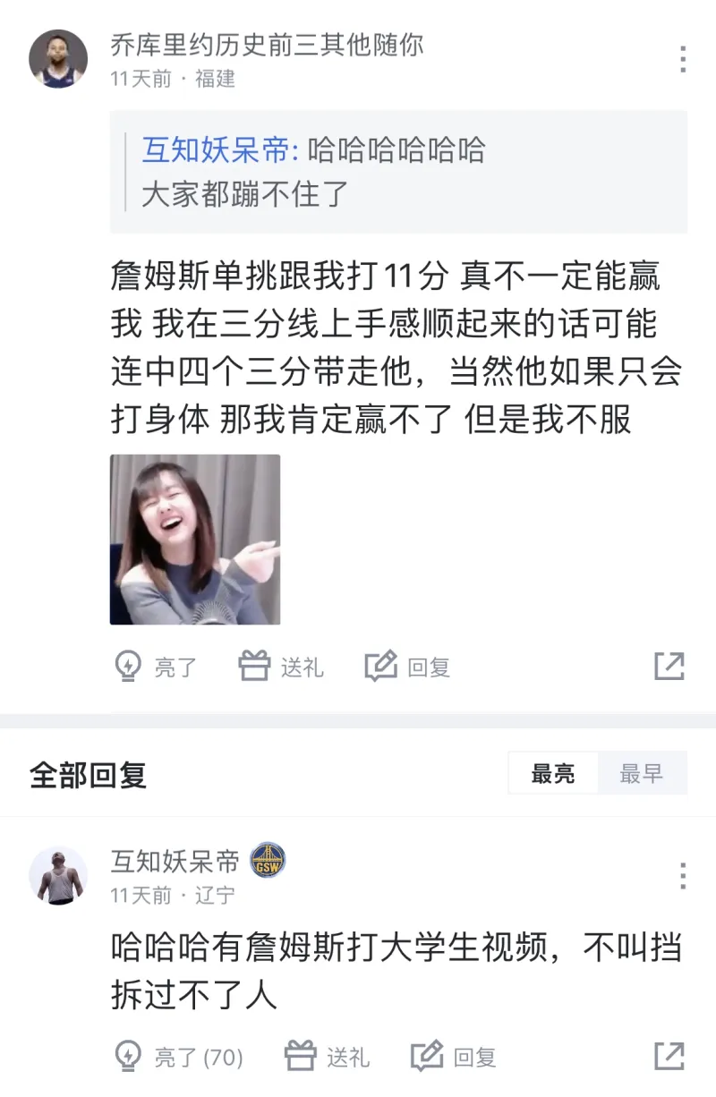 讓你跟一個(gè)NBA球員單挑50分,讓跟你能在他頭上進(jìn)五個(gè)球嗎?由虎撲JR168697875 發(fā)表在步行街主干道 https://bbs.hupu.com/topic-daily
