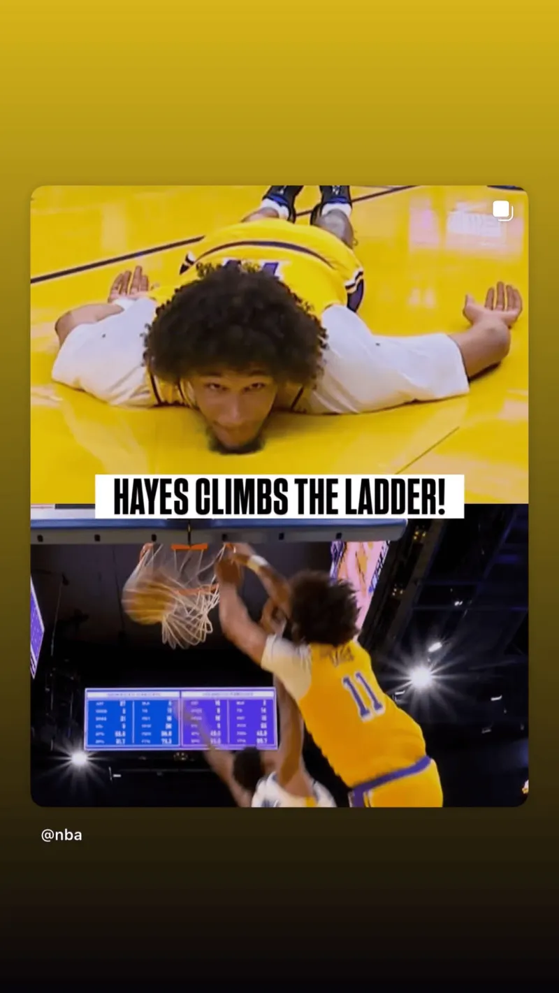 虎撲10月06日訊 湖人球員賈克森-海斯更新個人社媒,轉發(fā)NBA官方曬出的斯社曬出自己今日比賽中的隔扣瞬間。