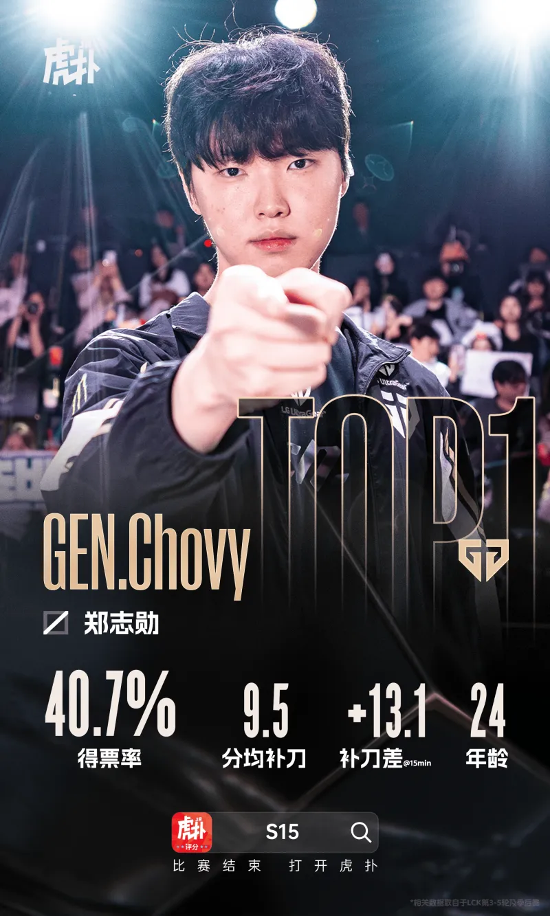 這是首次自2021年虎撲TOP20舉辦以來,首次由LCK選手當(dāng)選TOP1。選手
