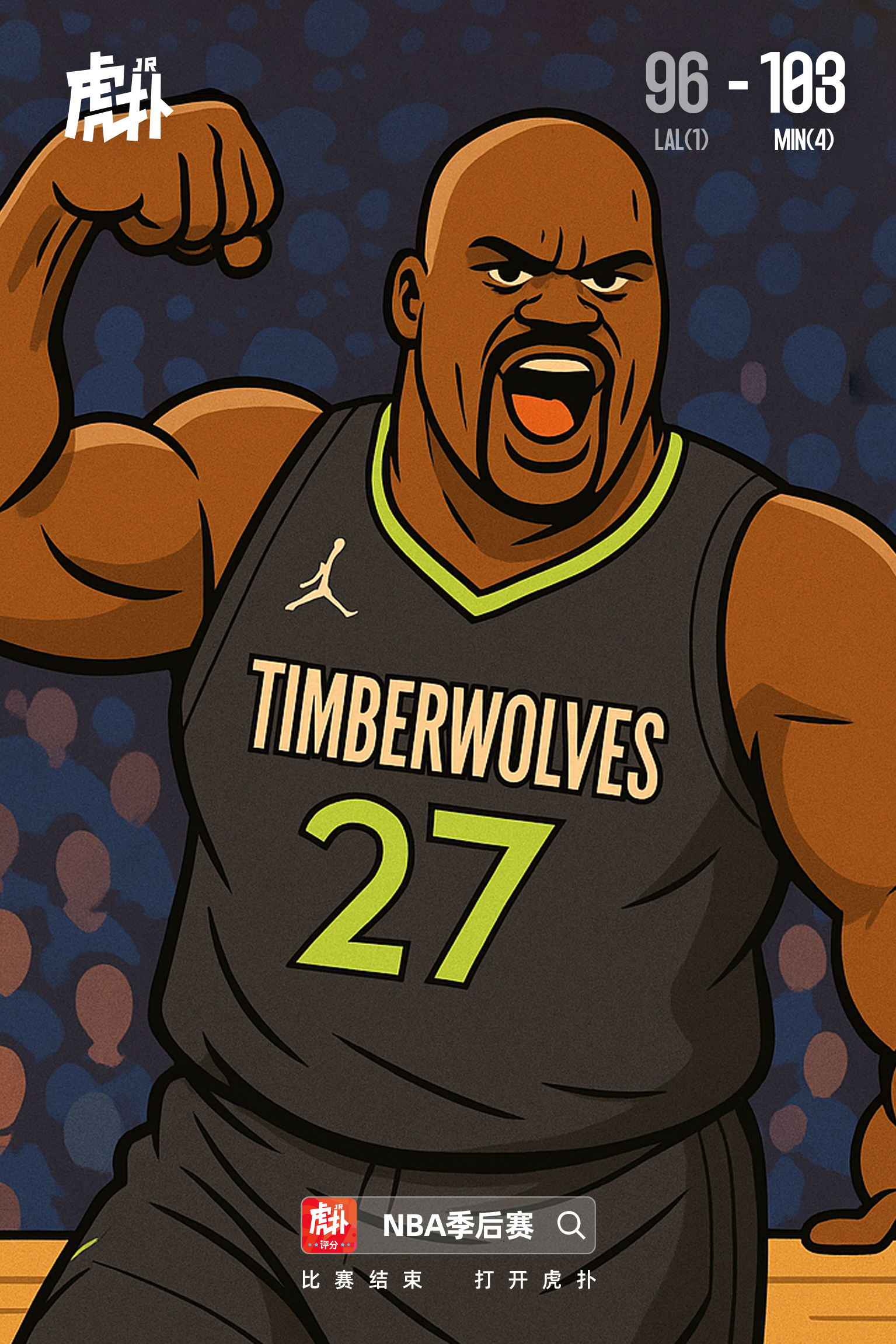 虎撲5月1日訊 今天NBA季后賽森林狼客場對(duì)陣湖人的比賽已經(jīng)結(jié)束。全場戰(zhàn)罷,爾全森林狼以(4)103-96(1)戰(zhàn)勝湖人。場分場籃