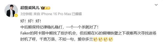 Faker的人蘭阿卡麗中期找了些許機會,但后期在IG的銅墻鐵壁之下很難再次尋找進(jìn)場時機了呀,千言萬語,不如一句,愛你多蘭