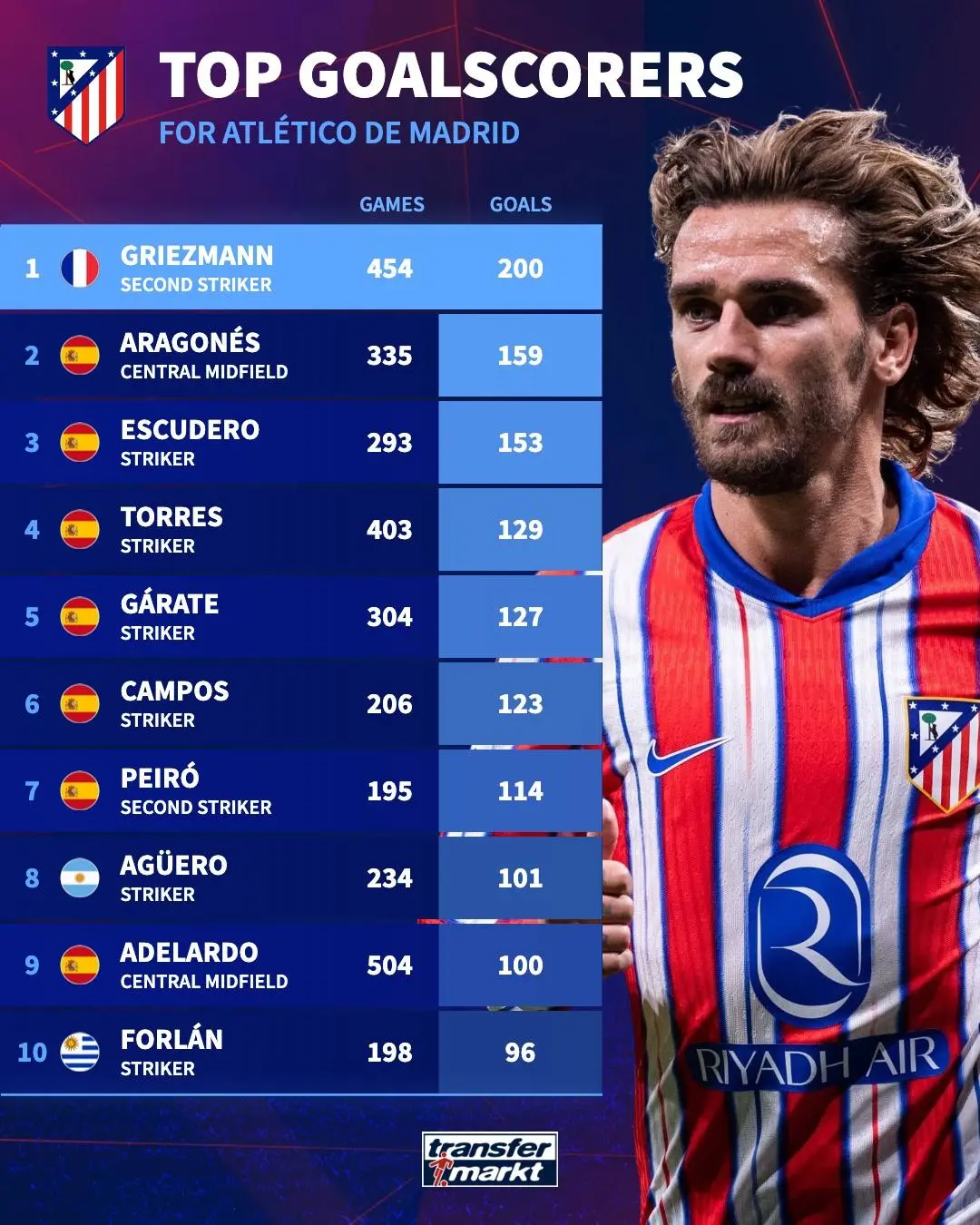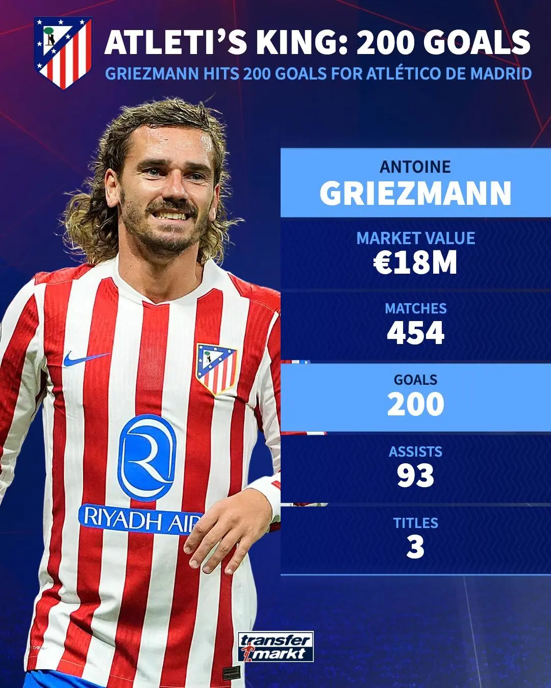 來源:Instagram虎撲10月01日訊 今天凌晨的歐冠比賽中,格列茲曼打入一球,競球達(dá)成200球里程碑。越多