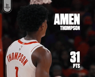 “阿門-湯普森在對陣太陽的比賽中砍下賽季新高的31分!這是他職業(yè)生涯第二高的單場得分表現(xiàn)??。