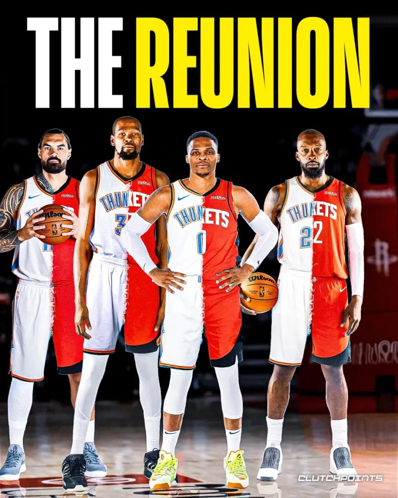 如今,哈登早已不在火箭,但現(xiàn)在這支火箭陣中確實(shí)有不少威少熟悉的球員,除了杜蘭特、亞當(dāng)斯之外,杰夫格林也曾和威少在雷霆時期短暫合作過。