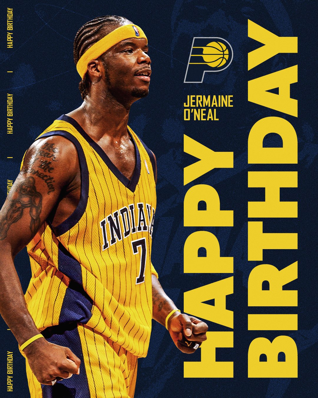 “杰梅因生日快樂??!祝杰讓我們一起祝杰梅因-奧尼爾生日快樂吧!梅因”步行者官方附文道。板當