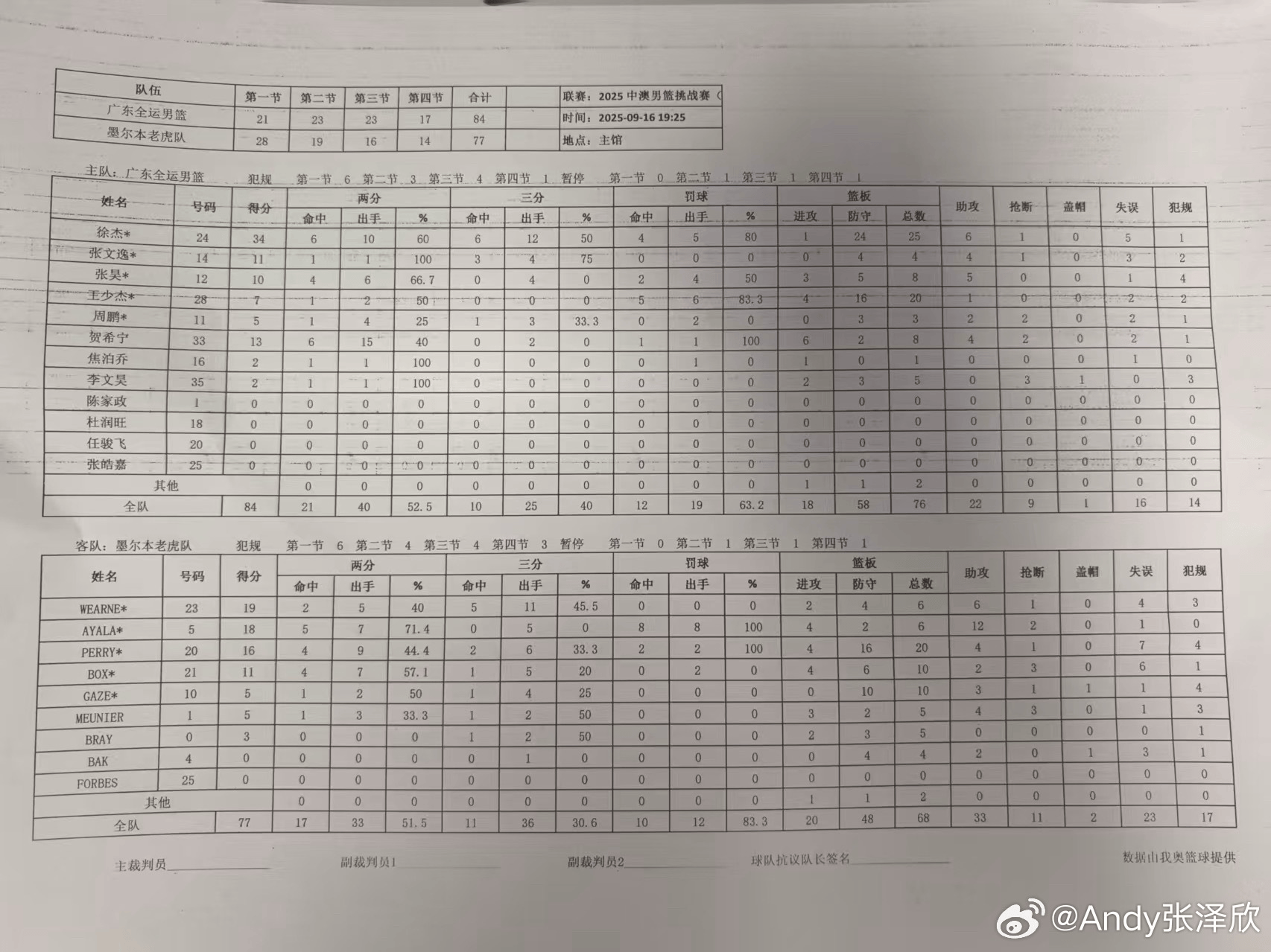 虎撲09月17日訊 昨晚中澳男籃挑戰(zhàn)賽,廣東全運(yùn)會男籃84-77戰(zhàn)勝墨爾本老虎。自媒