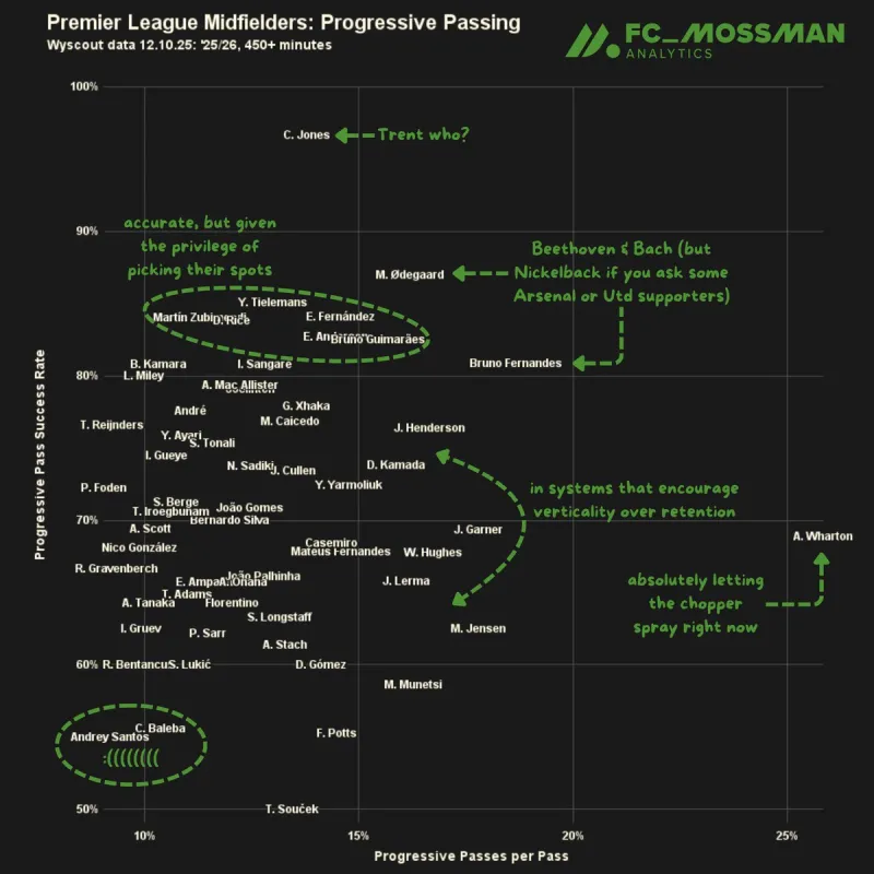 英超中場本賽季的英超推進傳球占比和成功率圖由ranamoo 發(fā)表在阿森納專區(qū) https://bbs.hupu.com/arsenal