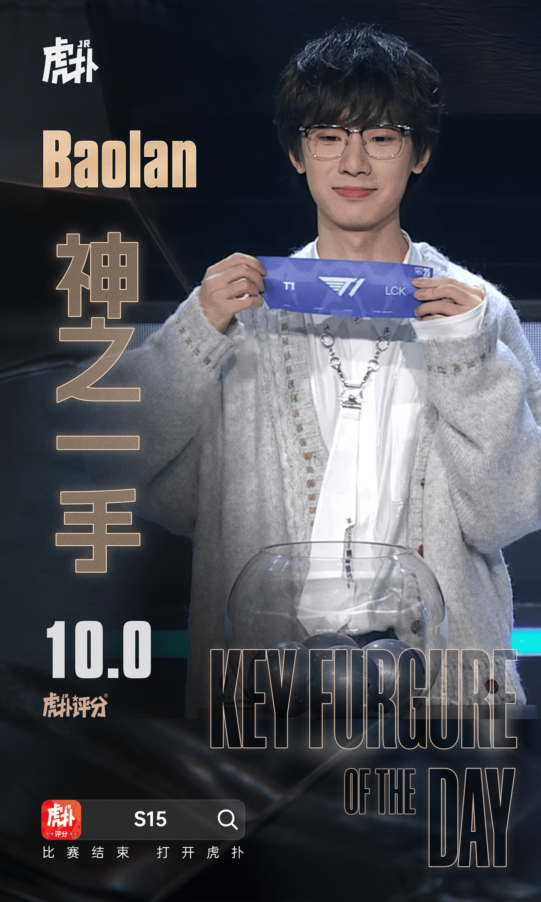 來源:虎撲電競虎撲10月17日訊 在昨日的賽后抽簽中,抽簽嘉賓Baolan接連施展神之一手,手昨日經(jīng)JRs提議,抽簽榮獲我們昨日的嘉賓佳場外特別最佳!
