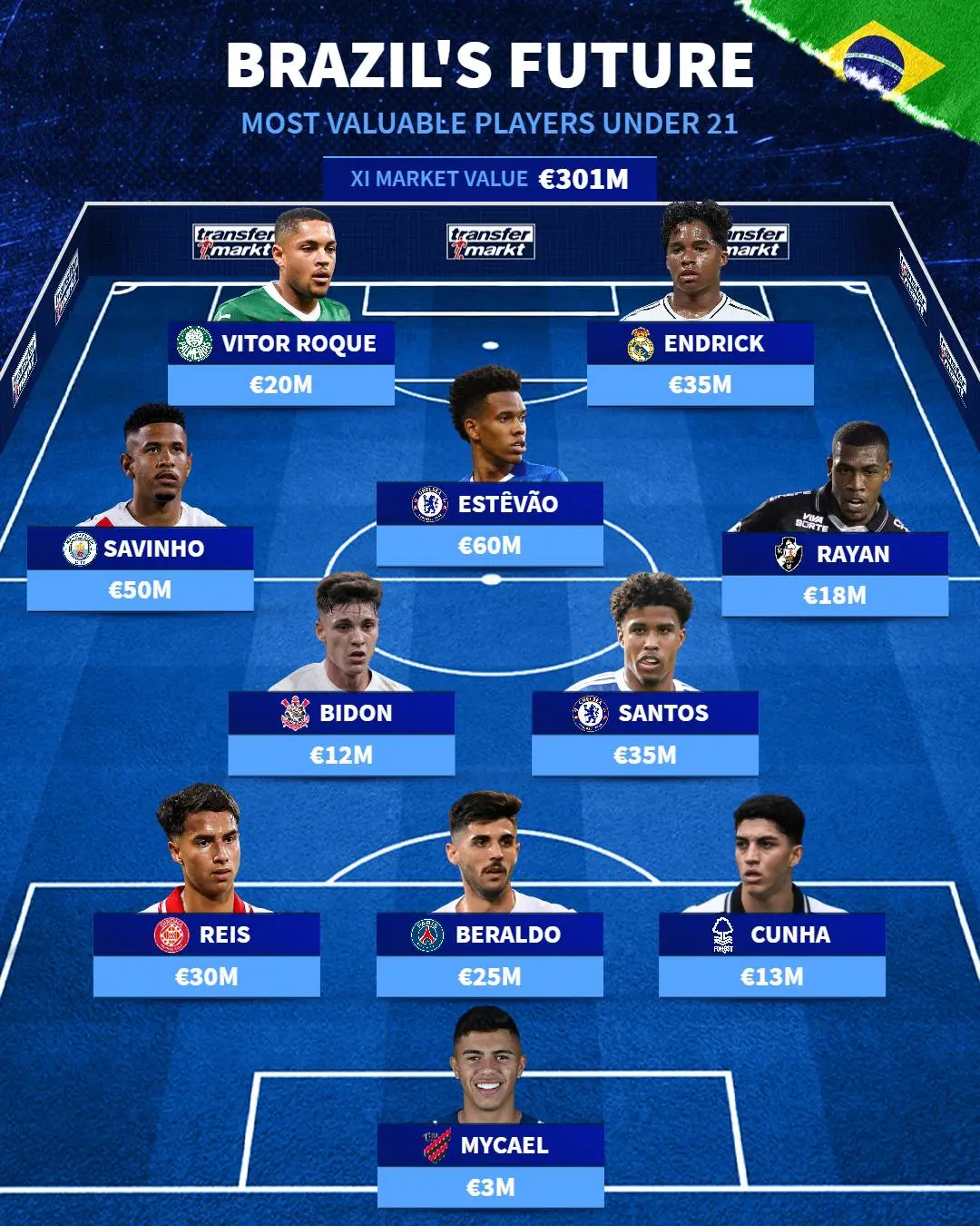 來(lái)源:Instagram虎撲10月12日訊 德轉(zhuǎn)今日發(fā)布了英格蘭、巴西、星最貴陣容法國(guó)、德轉(zhuǎn)杜埃意大利、特旺比利時(shí)U21球員的流言列多列最貴陣容,其中英格蘭隊(duì)總身價(jià)最高。星最貴陣容