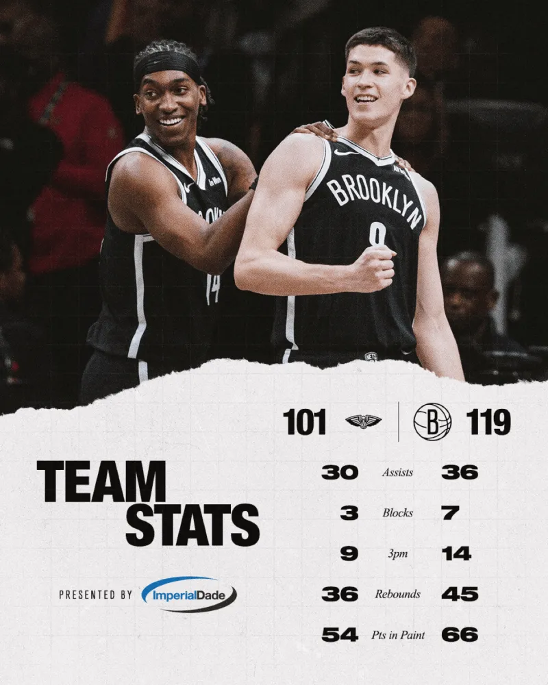 “球隊運轉(zhuǎn)行云流水,球籃創(chuàng)賽季新高的網(wǎng)官36次助攻 ??”,籃網(wǎng)官媒附文道。媒曬