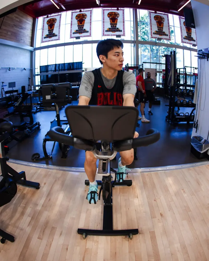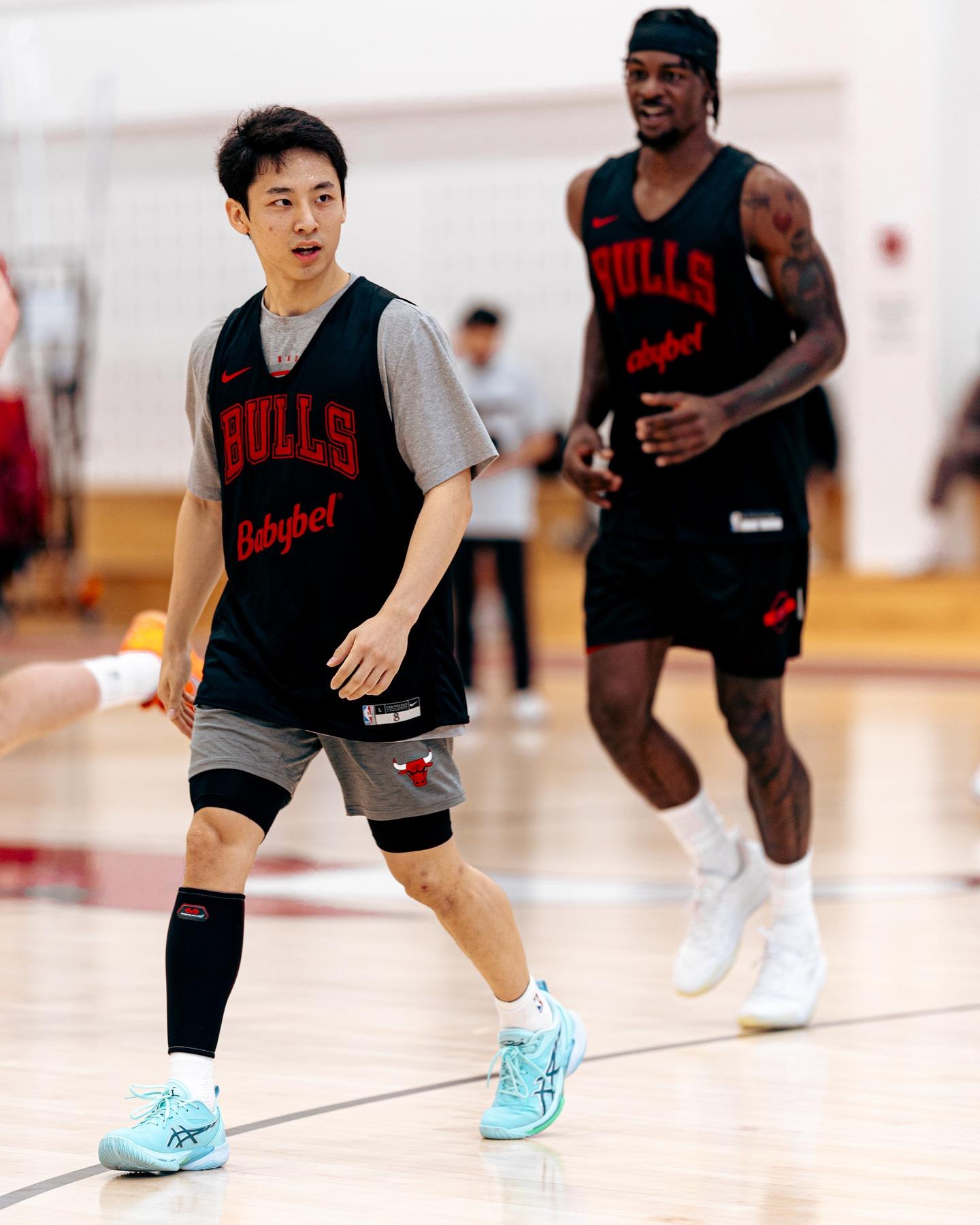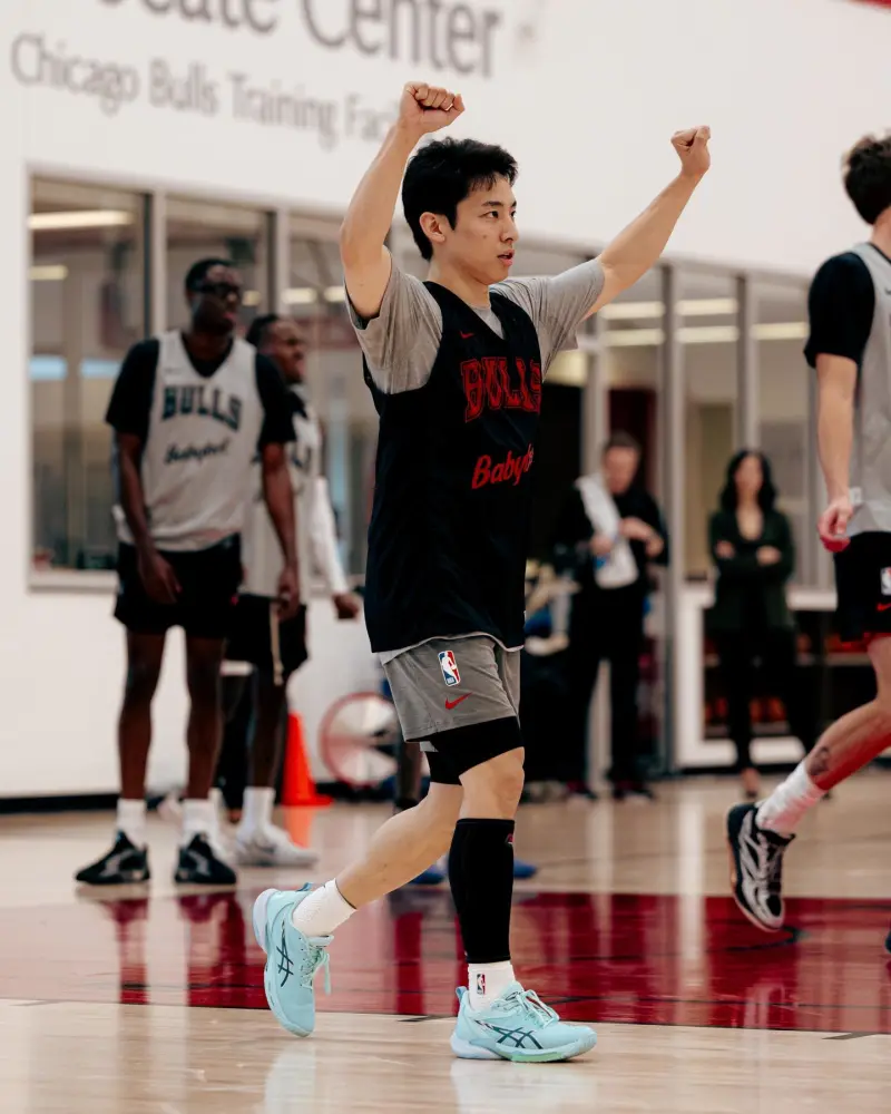 “??在訓(xùn)練館!員訓(xùn)勇輝”公牛官方附文道。河村