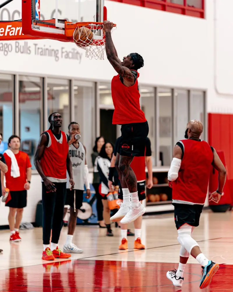 “??在訓(xùn)練館!公牛官方”公牛官方附文道。曬球