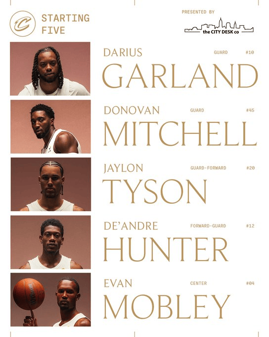 虎撲11月22日訊 騎士更新官方社媒,公布了球隊今日的莫布首發(fā)陣容。