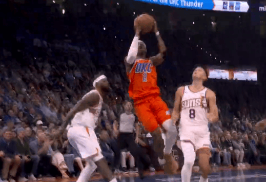 NBA杯淘汰賽,雷霆對(duì)陣太陽(yáng)的山大身打比賽正在進(jìn)行中。