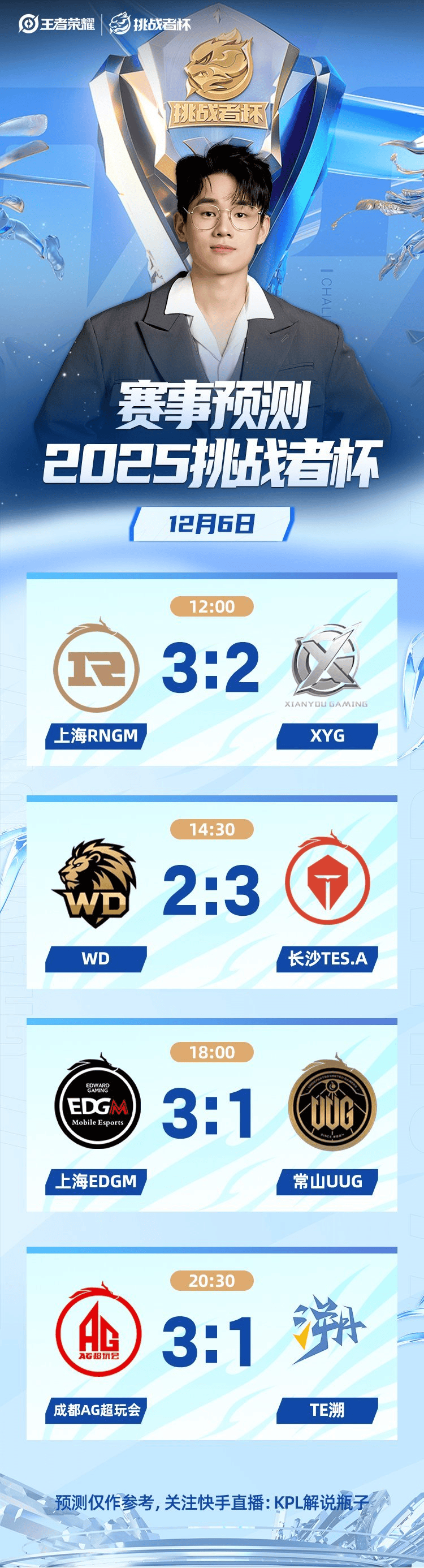 虎撲12月06日訊 瓶子預(yù)測(cè)今日賽果:成都AG 3-1 TE溯,上海雙雄/滔博晉級(jí)