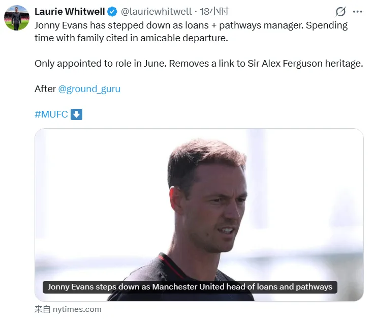 跟隊LW:喬尼?埃文斯已卸任租借及青訓(xùn)發(fā)展主管一職,雙方以友好方式解約,其本人表示離職是為了有更多時間陪伴家人。
